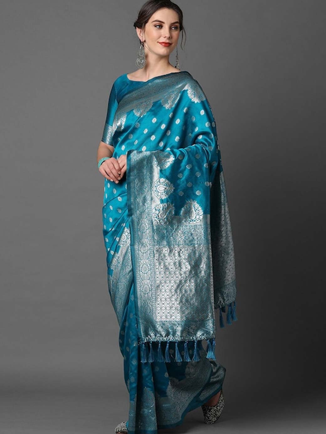 Blue and silver-coloured banarasi saree