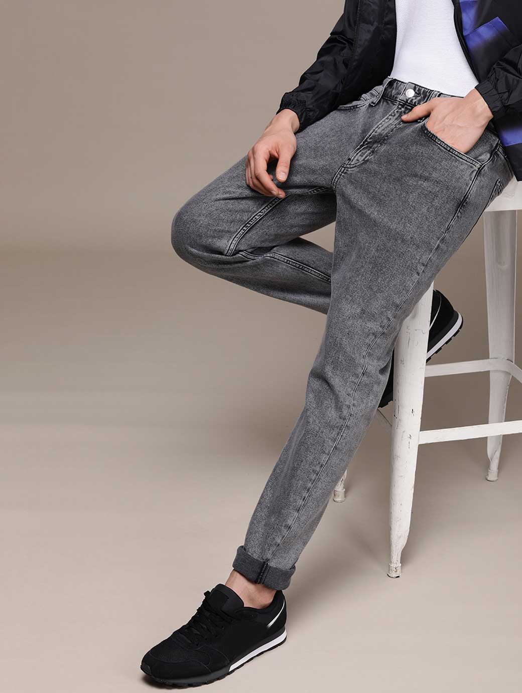 Men Grey Slim Tapered Fit Mid-Rise Heavy Fade Stretchable Jeans