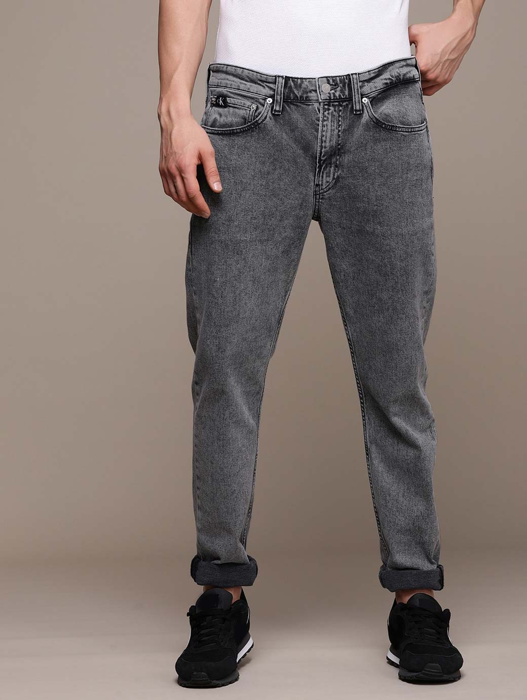 • Slim tapered fit, mid-rise