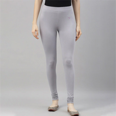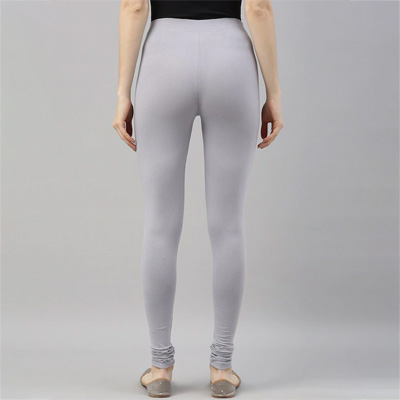 Grey solid churidar-length leggings, has an elasticated waistband, and slip-on closure
