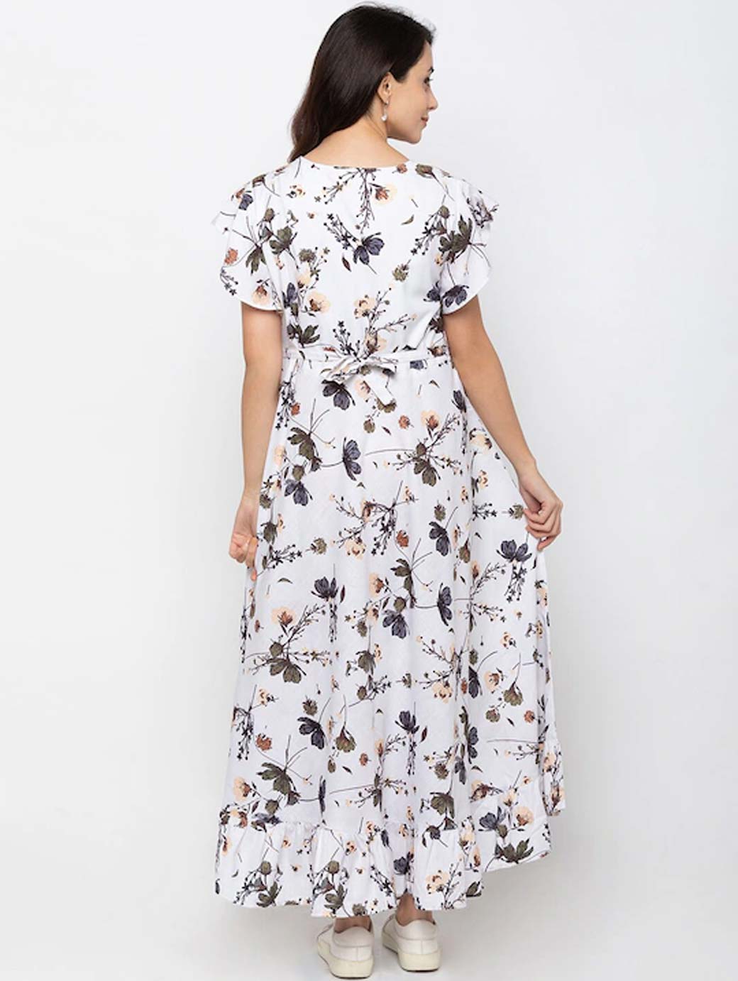 Women White & Green Floral Printed Maternity Nursing Maxi Dress