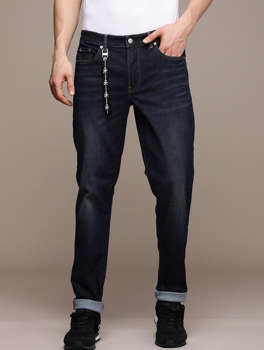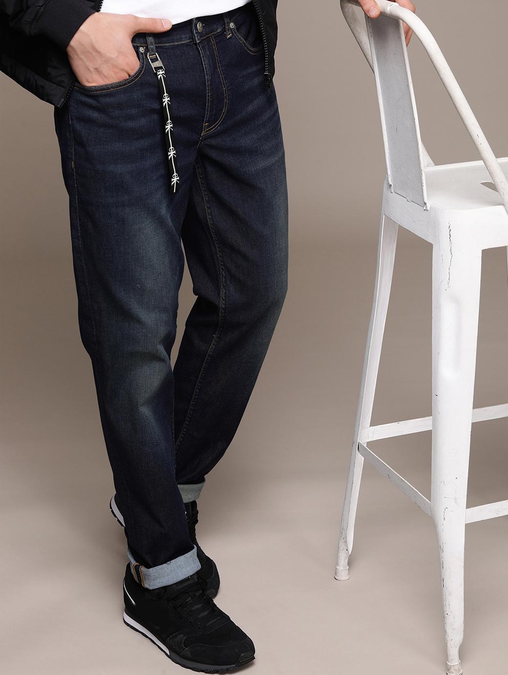 Men Navy Blue Body Tapered Fit Mid-Rise Light Fade Stretchable Jeans