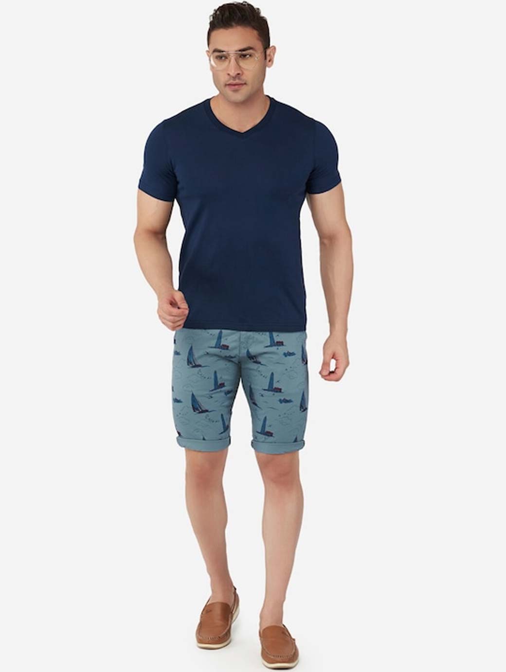 Men Navy Blue Conversational Printed Outdoor Shorts