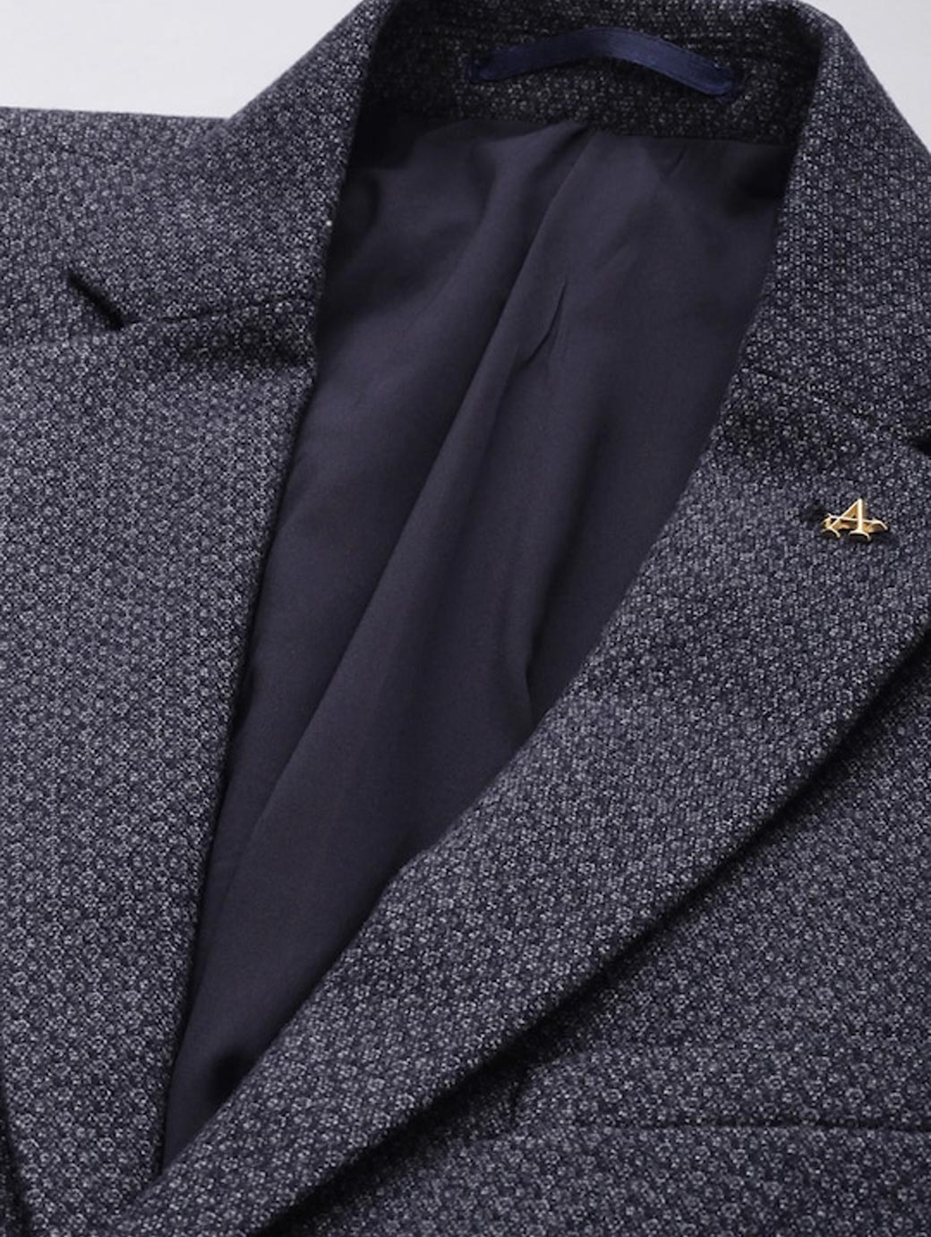 Men Navy Blue Self Design Slim Fit Single-Breasted Smart Casual Blazer