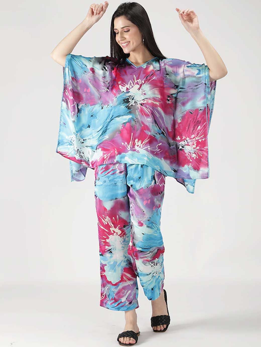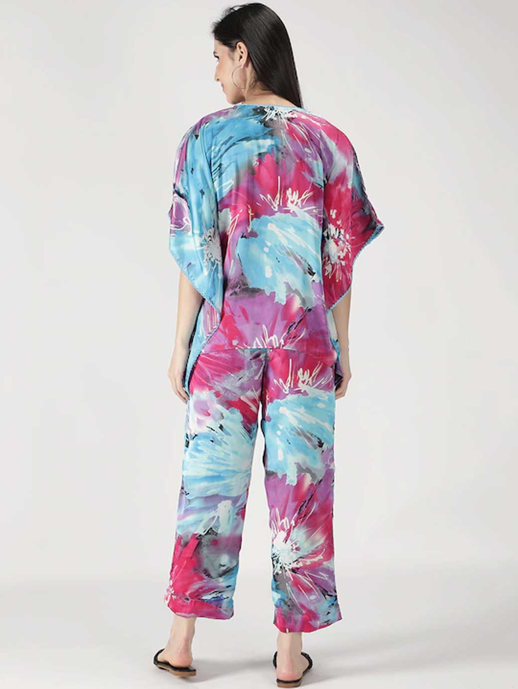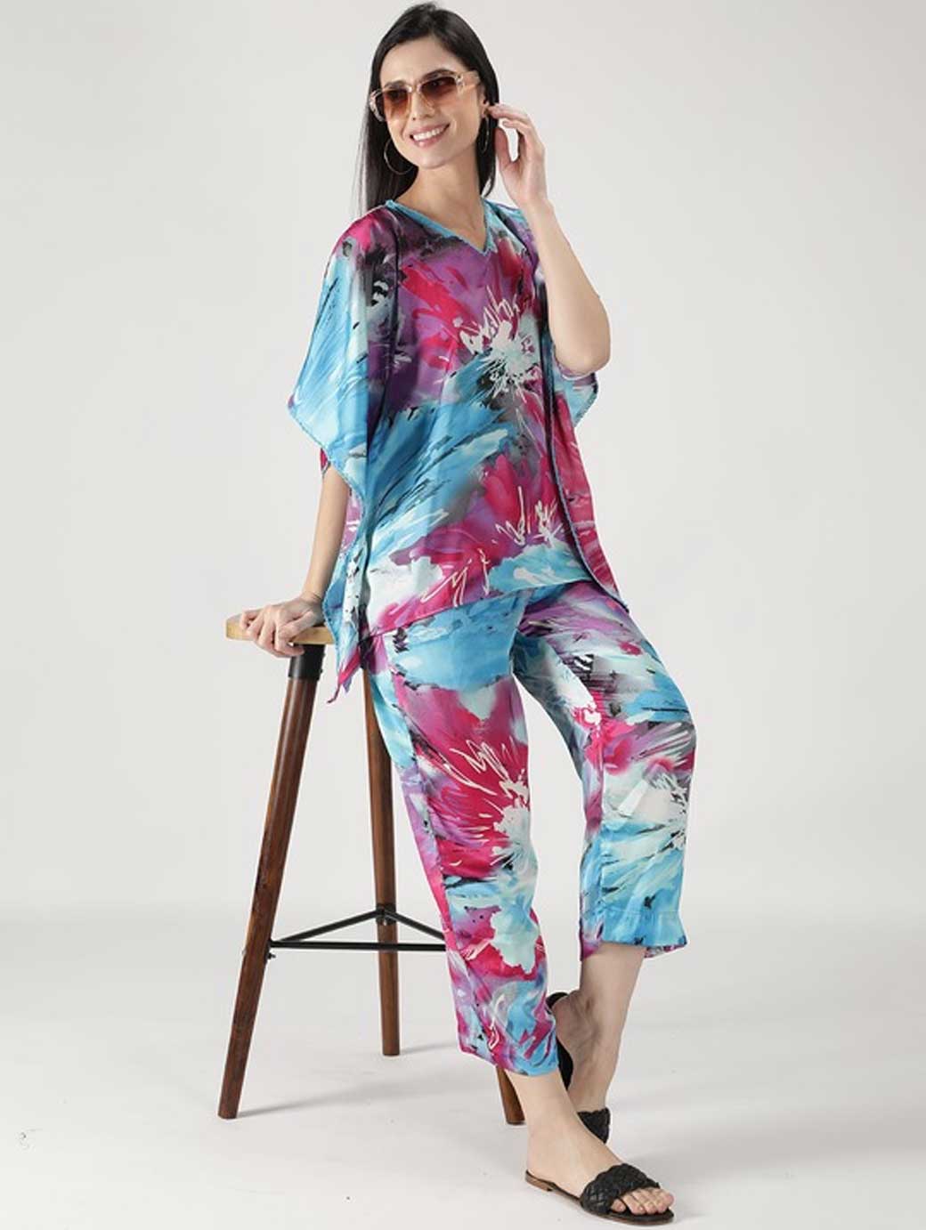 Women Blue & Pink Printed Kaftan Night suit