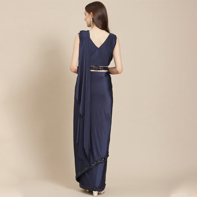 Navy Blue Sequinned Ready to Wear Saree